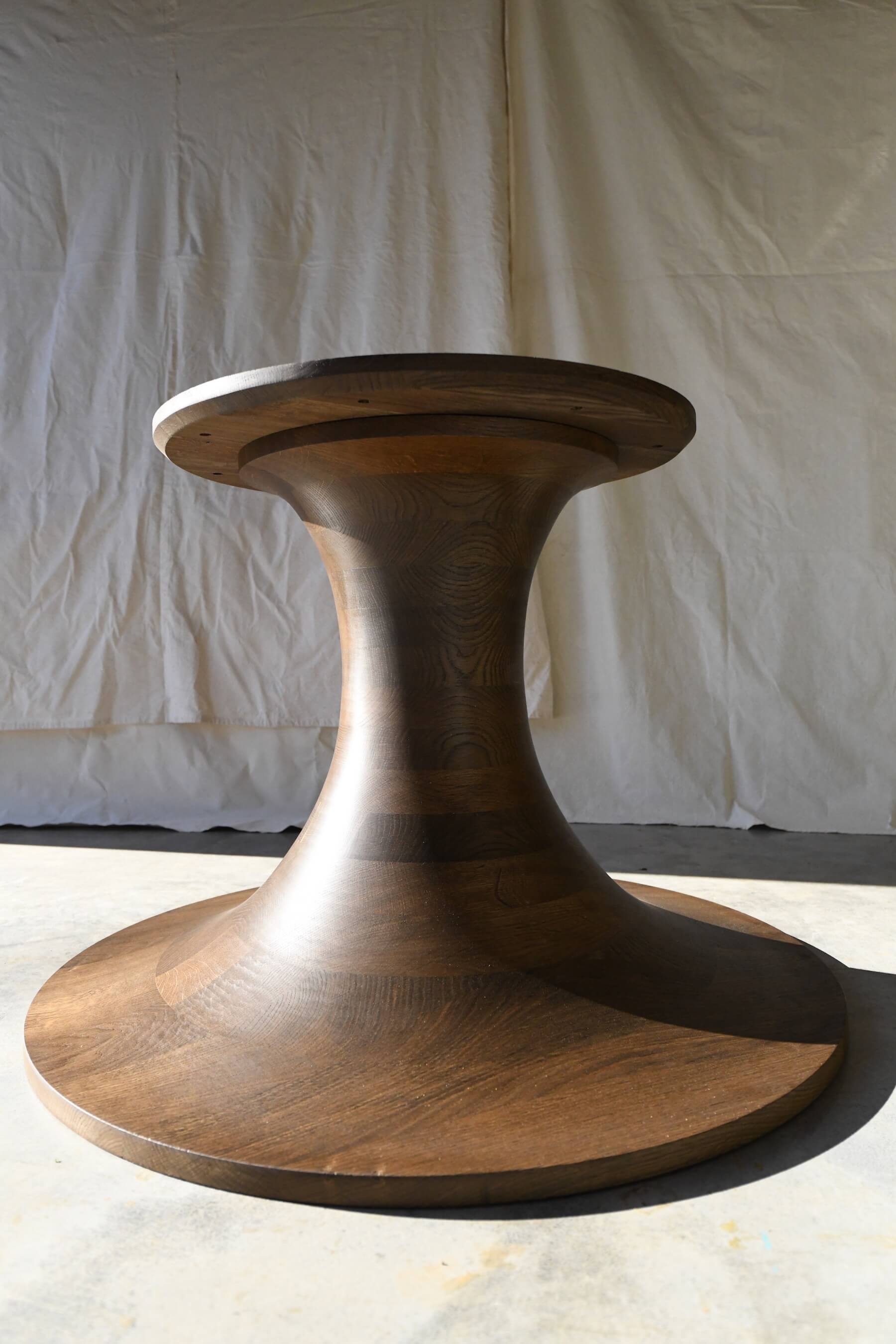 Handcrafted in our workshop from solid British hardwood, this table combines sculptural form with quiet restraint. The smooth, elliptical pedestal base gives the piece a calm sense of balance and strength, while the wide circular top showcases the natural depth and warmth of the timber.