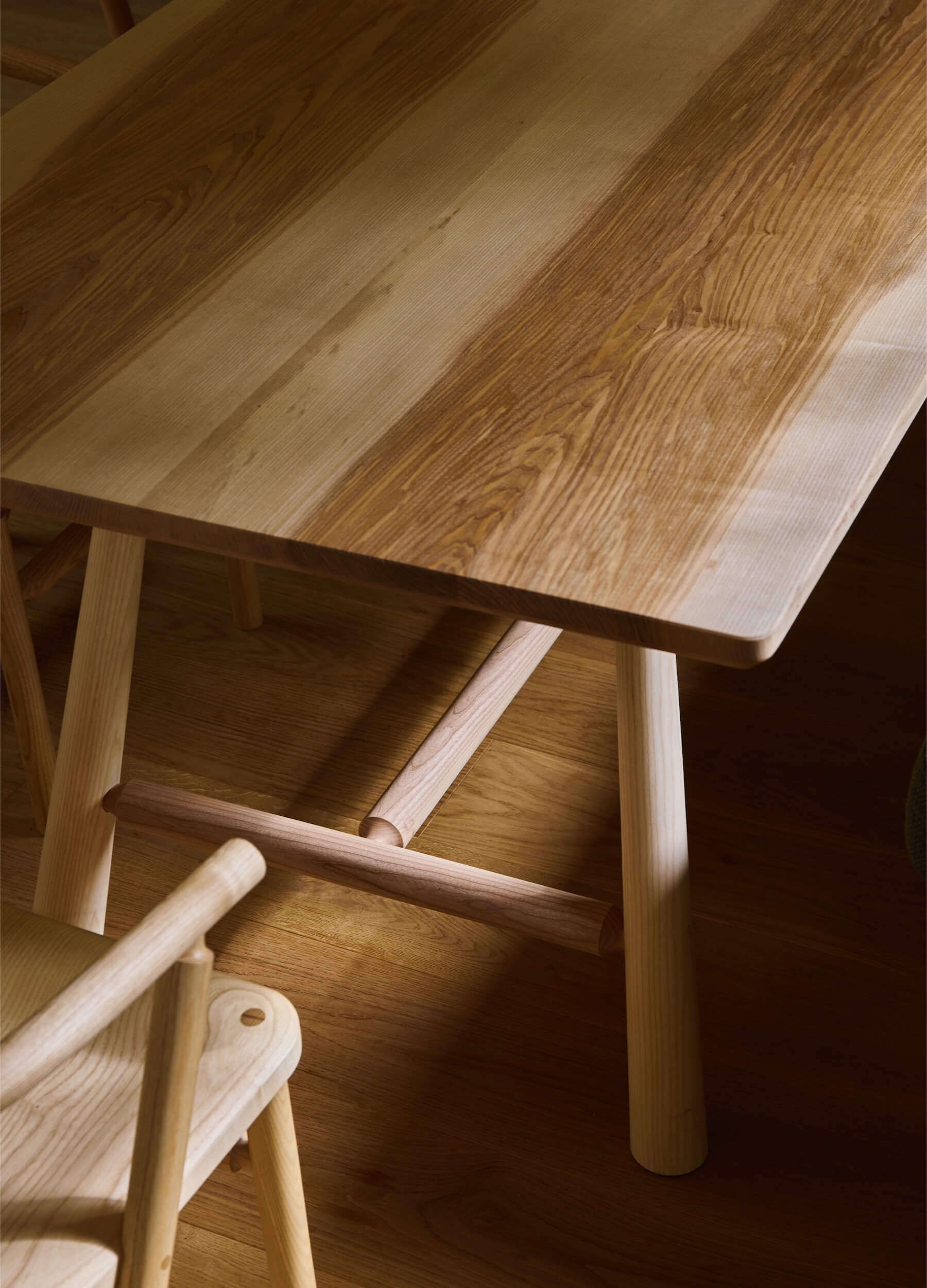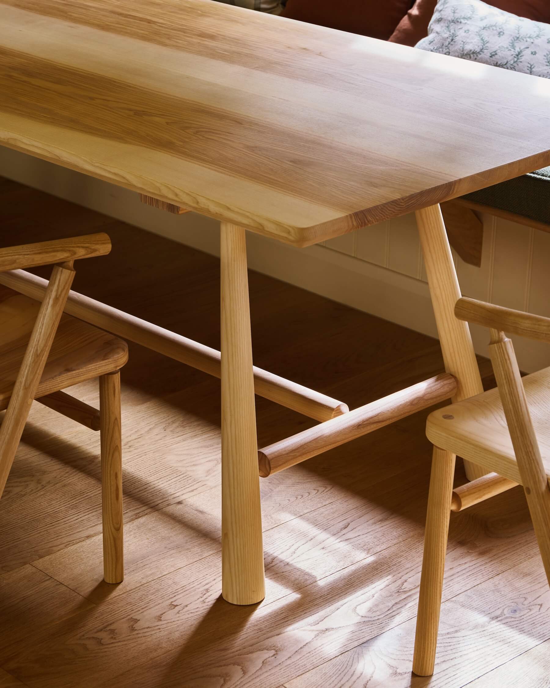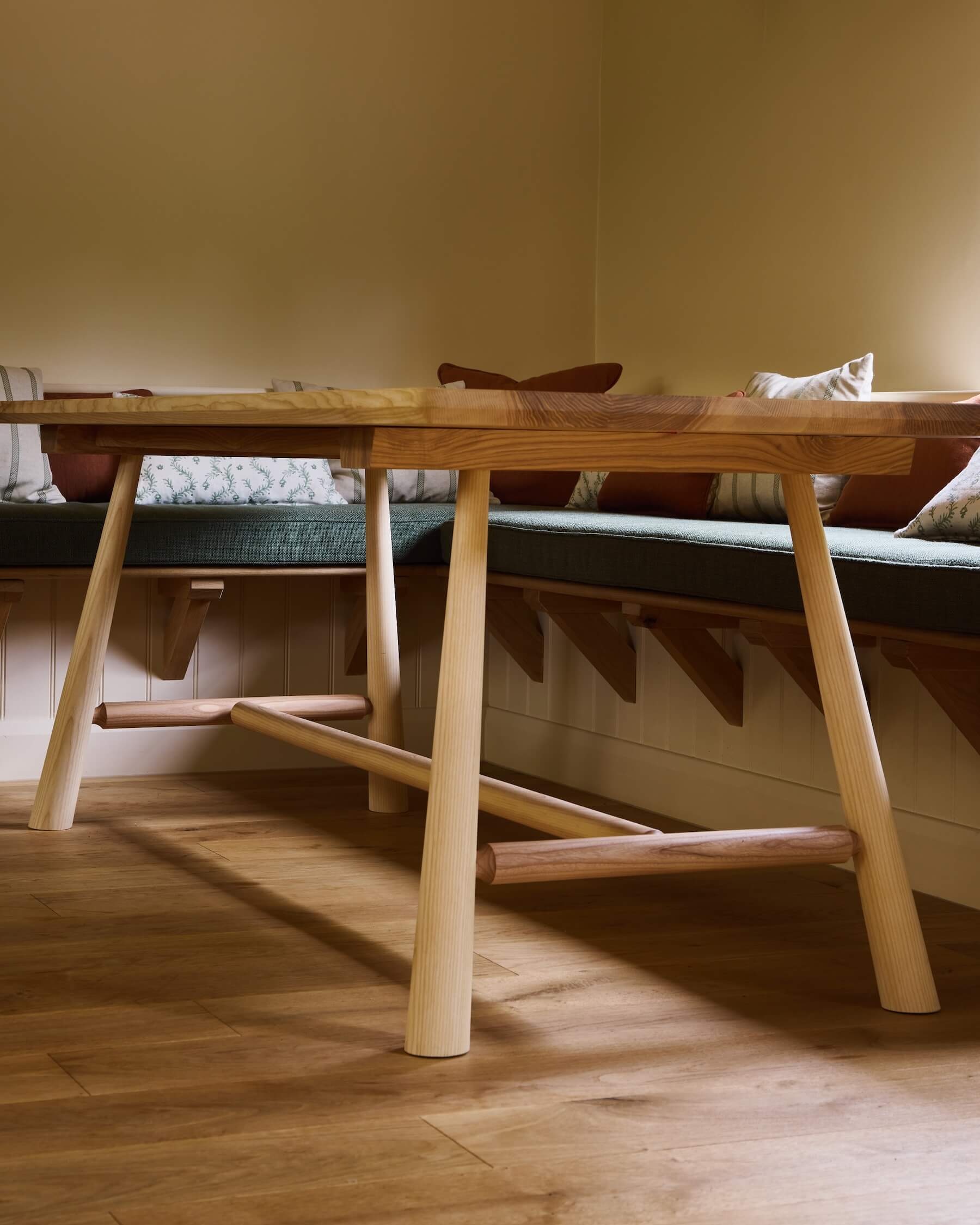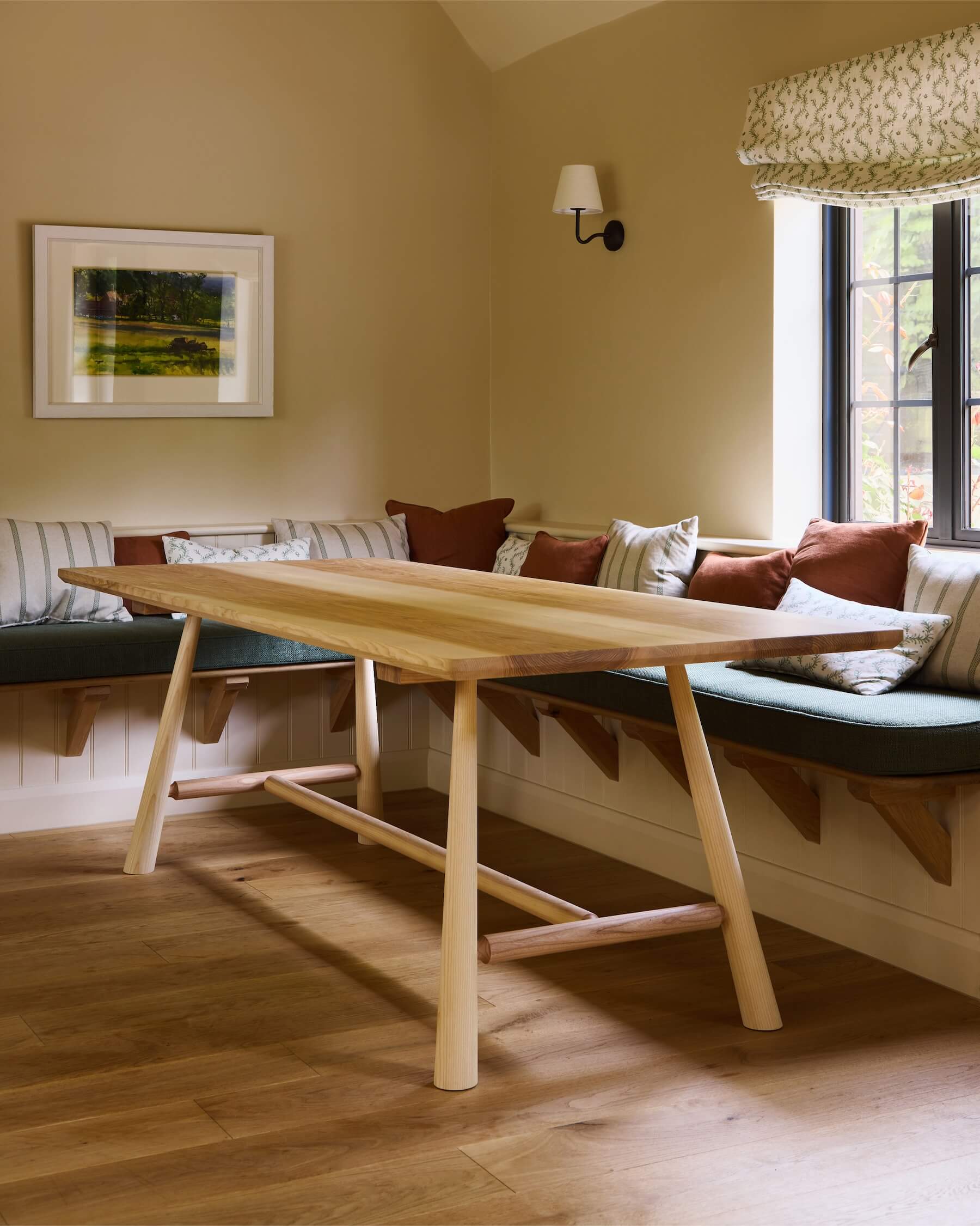 his solid ash kitchen/dining table anchors the nook with quiet confidence, Scandinavian simplicity meets British countryside charm. Designed for slow mornings, shared meals, and at length conversations