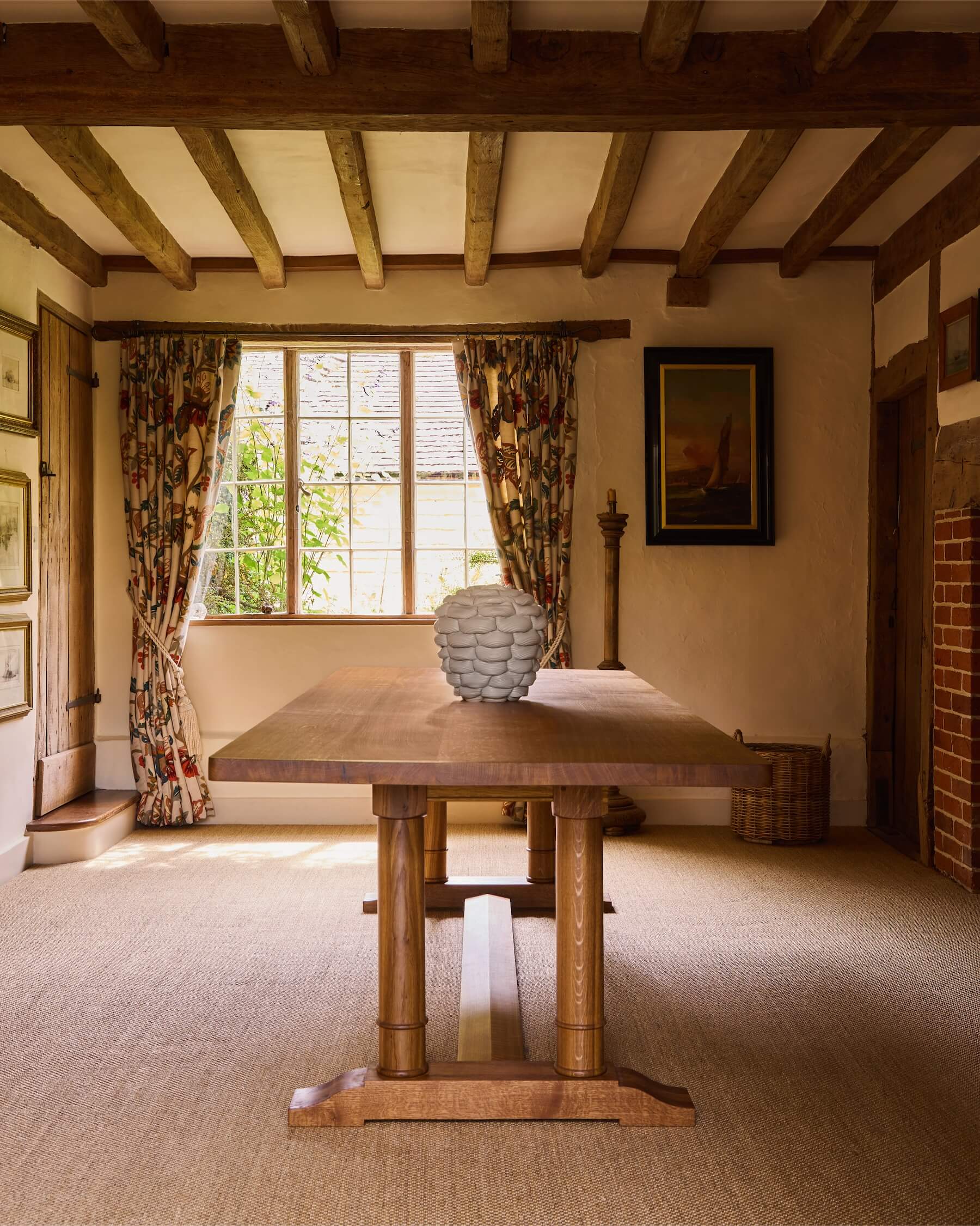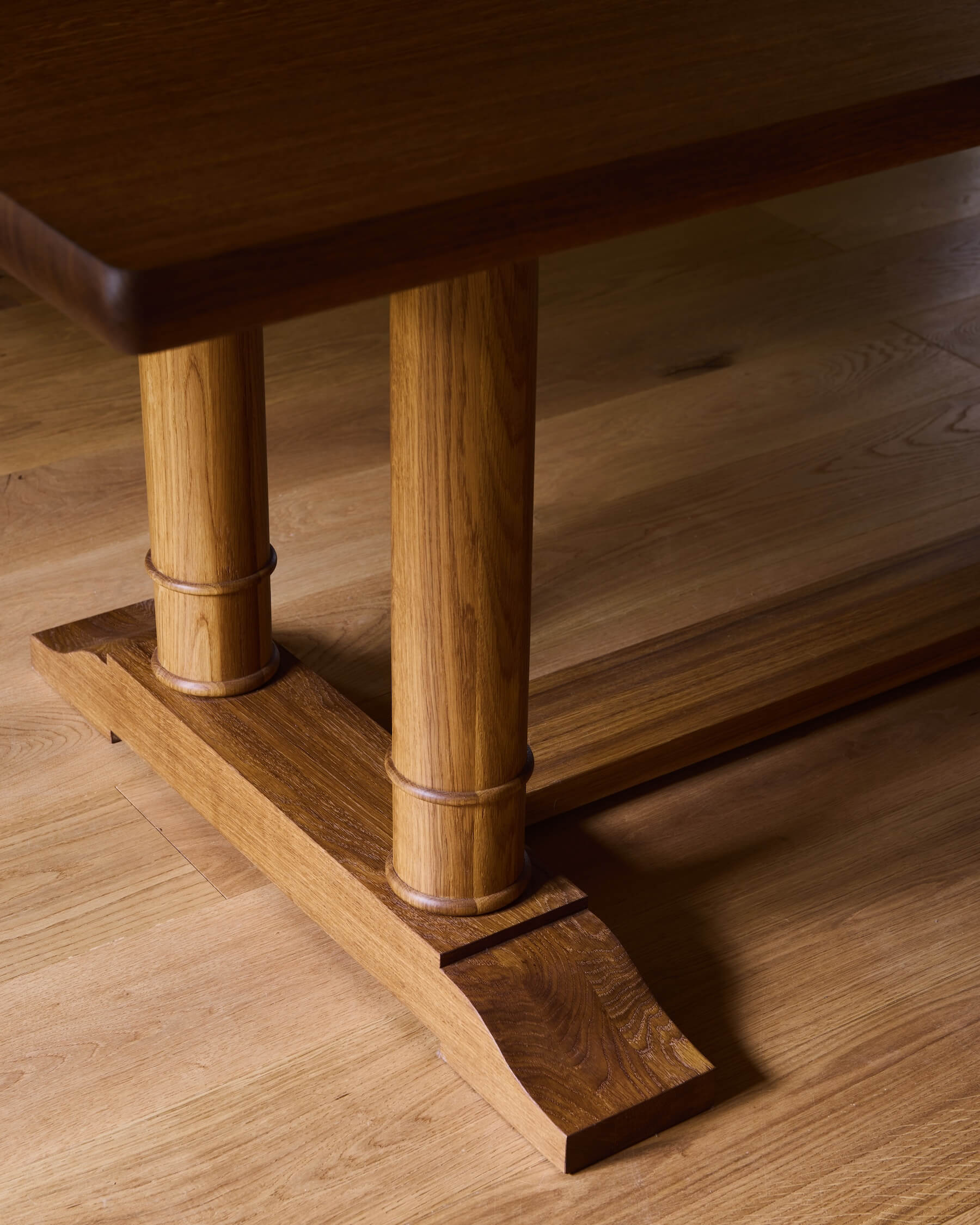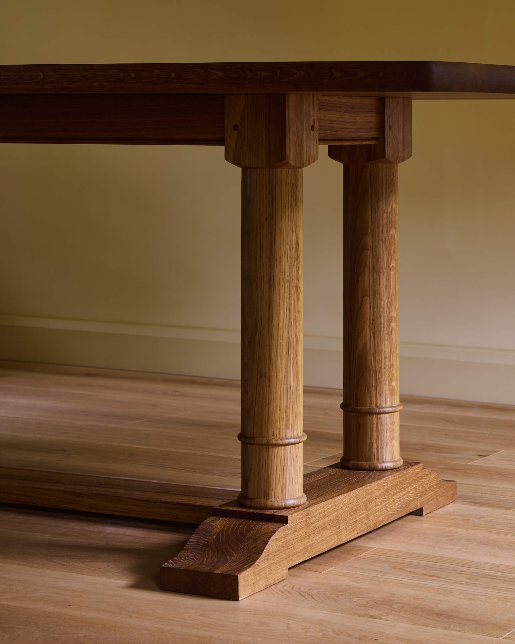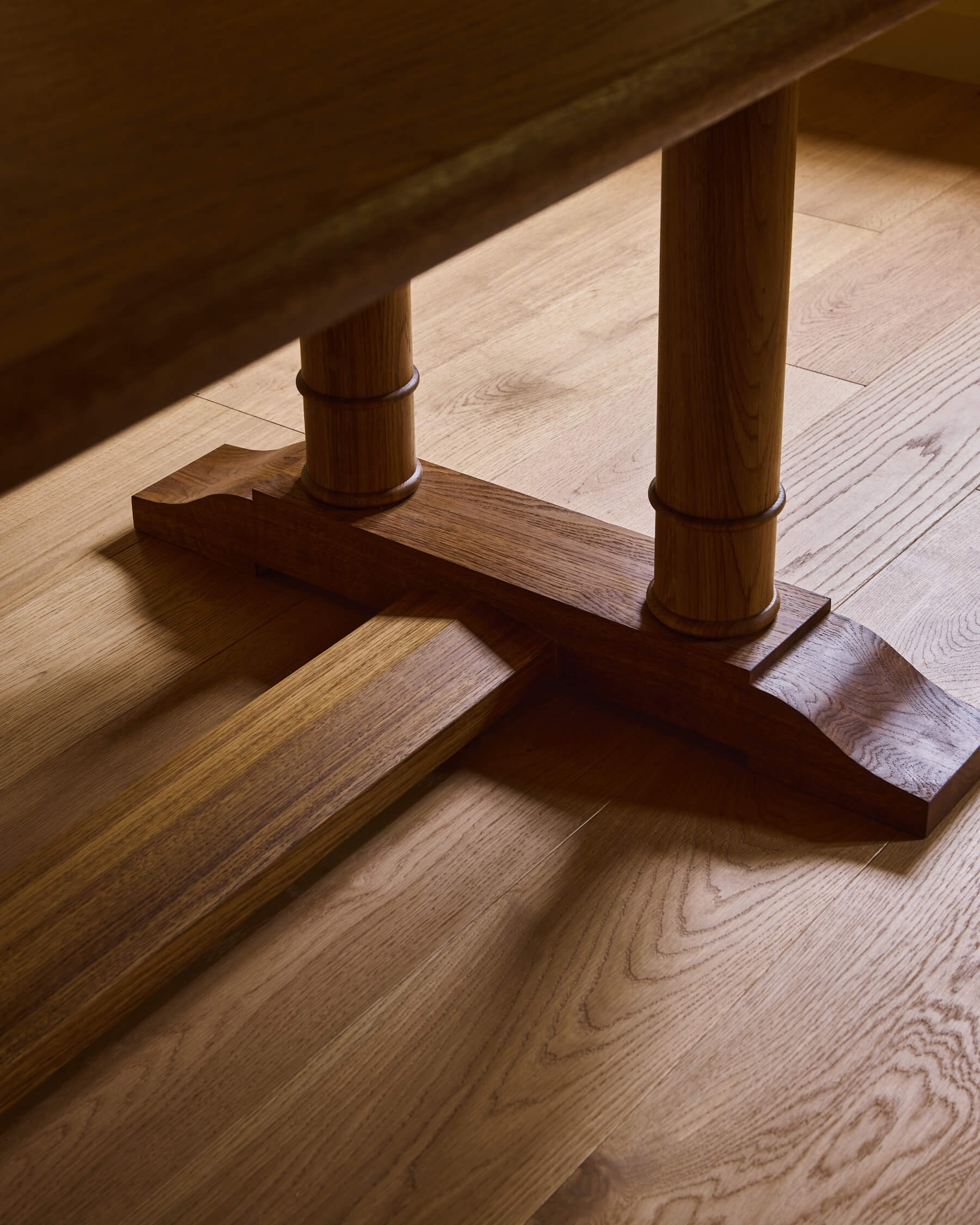 Handcrafted from solid British oak, the Rectangular Tilden Table reimagines the elegance of Heals’ 1930s design through Joss Stoddart’s contemporary lens. The long, refined tabletop showcases the pale grain and character of the timber, while gun barrel-turned legs and sledge feet provide balance, strength, and a subtle sculptural presence. Built in our own workshop, it’s a table that blends tradition and modern simplicity — designed to last a lifetime. Crafted in our own workshop, this refectory table combines timeless design with honest craftsmanship. Made from carefully selected hardwoods, it features traditional joinery, balanced proportions, and a natural finish that celebrates the character of the wood. Each piece is unique — designed and made to order by Joss Stoddart.